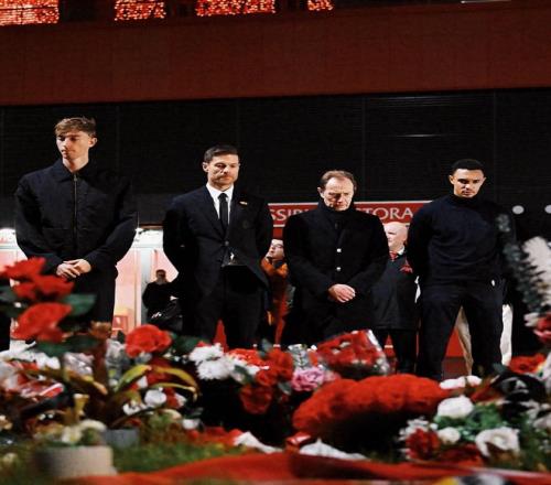 在欧冠焦点战利物浦对阵皇家马德里打响前夕,皇马全队展现了令人动容的体育精神。11月3日,即比赛前一天,皇马主帅哈维·阿隆索携俱乐部传奇埃米利奥·布特拉格诺、新援特伦特·亚历山大-阿诺德以及年轻中卫赫伊森,专程来到安菲尔德球场外的迪奥戈·若塔纪念牌前,敬献花圈,表达深切悼念。