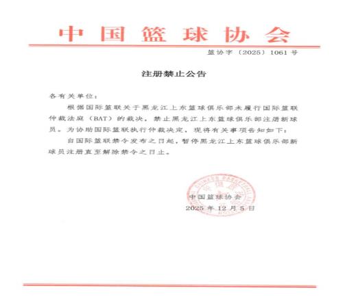 中国篮协:暂停黑龙江上东篮球俱乐部新球员注册 界面新闻 2025-12-05 22:30:30 中国篮协12月5日公告,自国际篮联禁令发布之日起,暂停黑龙江上东篮球俱乐部新球员注册直至解除禁令之日止。 篮球 上东 CBA 黑龙江 中国篮协 球员注册 上一篇: 体坛午爆俱乐部杯山东男篮6日迎战广厦,足协杯国安与河南争冠 下一篇: 返回列表