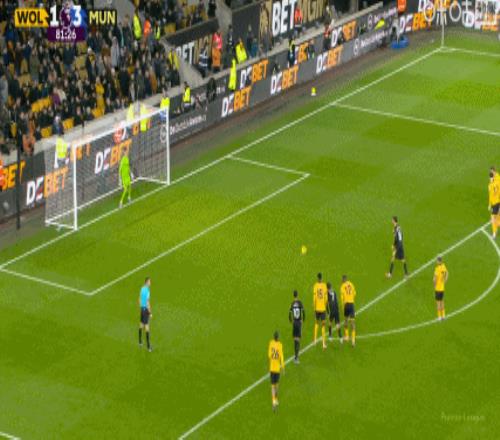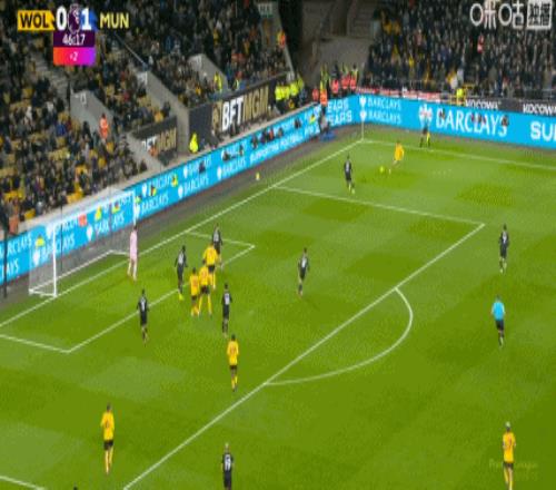 第45+2分钟,沃尔费倒三角回传,贝勒加德铲射破门,狼队1-1!