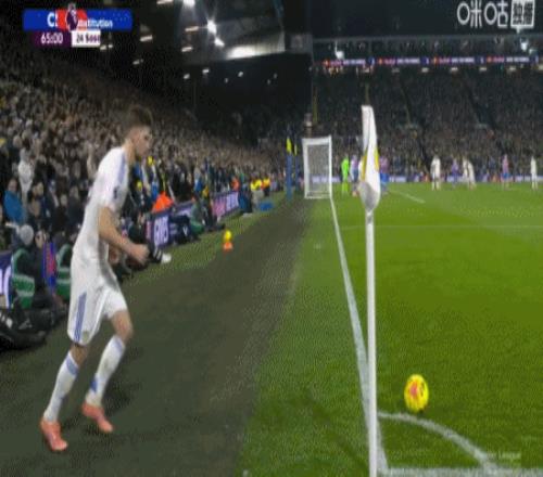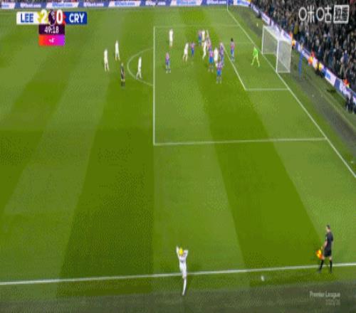 第45+4分钟,比约尔助攻,勒温头球破门完成双响,利兹联2-0水晶宫