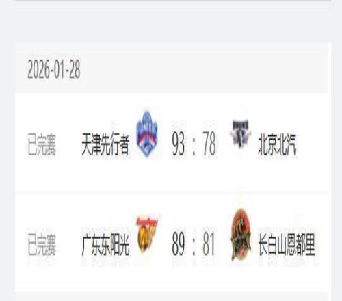CBA常规赛,1月28日晚上只有两场比赛,其中广东队在主场以89-81战胜吉林队,拿到一波5连胜,目前广东队战绩17胜4负,暂时来到CBA积分榜第一的位置;北京首钢队在客场78-93不敌天津队,目前战绩排名13胜8负,目前位于CBA积分榜第四。